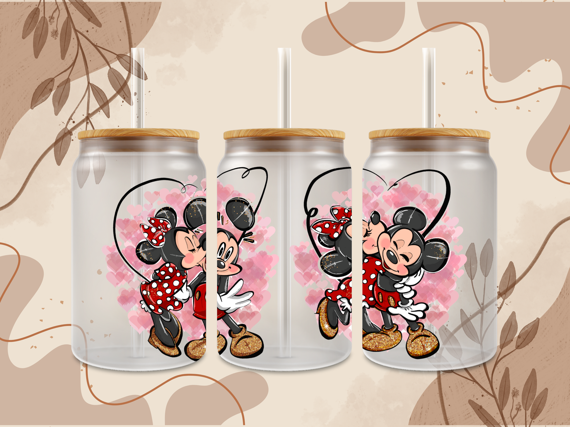 16oz Glass Can with kissing mice.